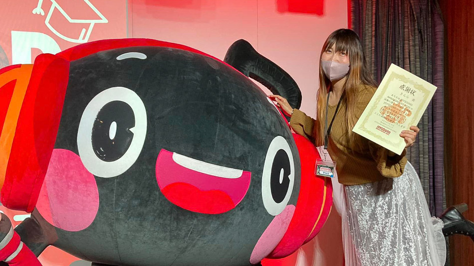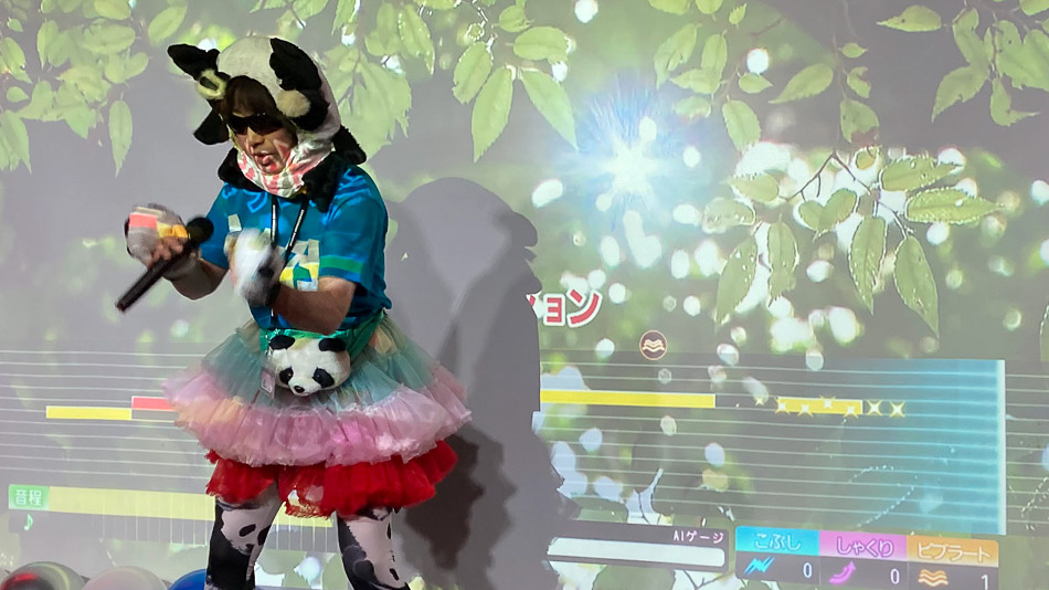 本プログラム内で70点以上を獲得すると、JOYSOUND公式キャラクター「ジョイオンプー」のアクリルキーホルダーがゲットできるように、景品として設定されていました。歌の入るタイミングが難しい曲でしたが、事前に練習してきた方は70点に近い点数を獲得できていたように感じます。