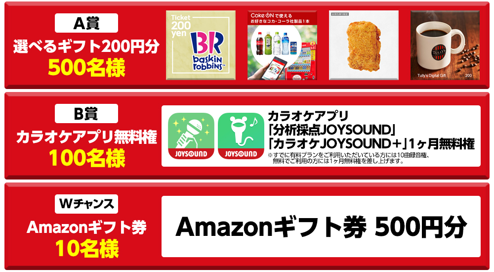 【B賞】カラオケアプリ「分析採点JOYSOUND」/「カラオケJOYSOUND+」1ヶ月無料権…100名様