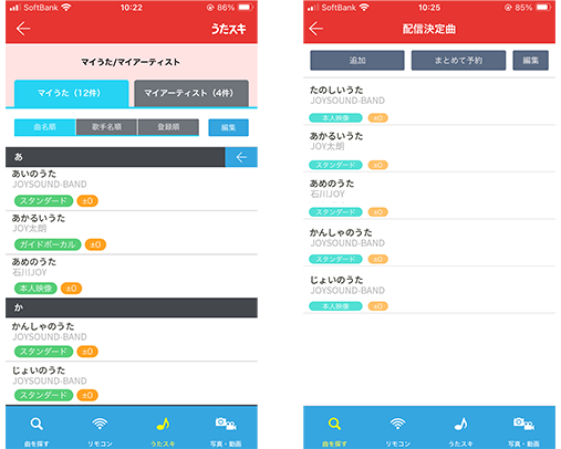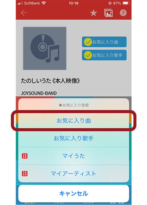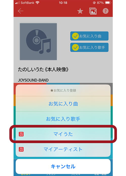 3. キョクナビアプリで右上の「★」から「マイうた」に登録して、