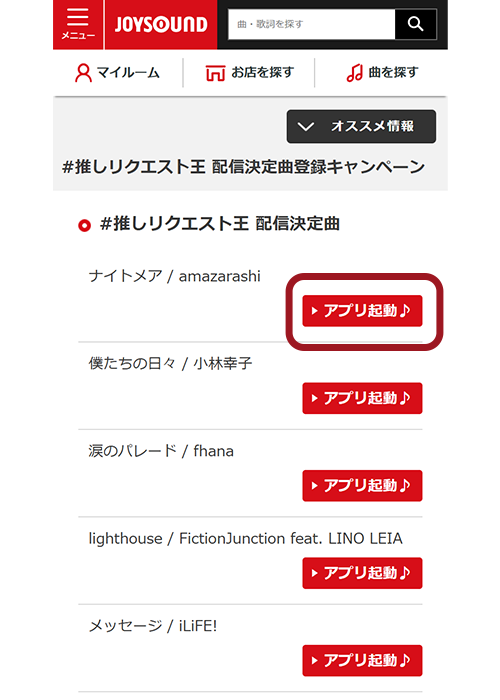 ※配信決定曲は随時追加予定です。追加時にアプリのプッシュ通知でお知らせします。