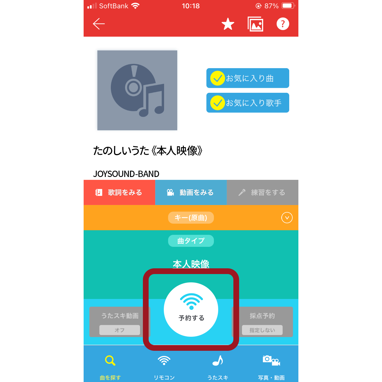3. キョクナビアプリで右上の「★」から「お気に入り曲」に登録