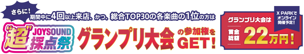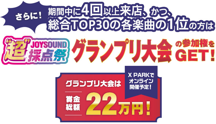 期間中に4回以上来店、かつ、総合TOP30の各楽曲の1位の方は参加権をGET!