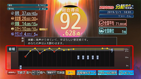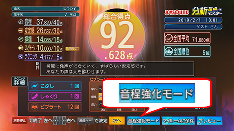 ※最後まで歌いきると「音程強化モード」を選択することができます。