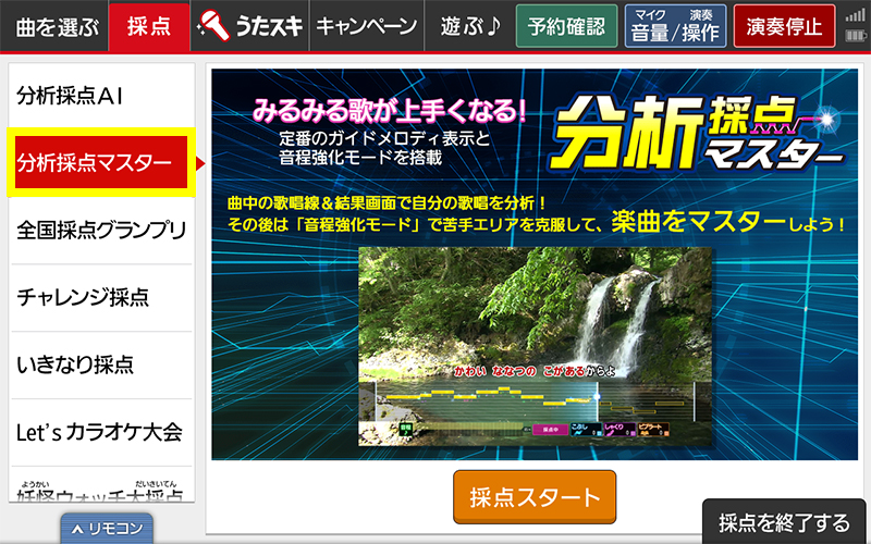 分析採点マスターとは、あなたの歌唱力を徹底的に分析し、細かく採点・評価してくれるサービスです。 繰り返し練習することで得点アップに繋がります。採点機能の使い方をしっかり確認し、高得点を目指しましょう!