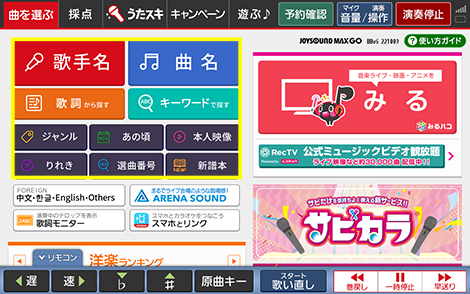 JOYPadキョクナビで歌いたい曲を検索しよう。