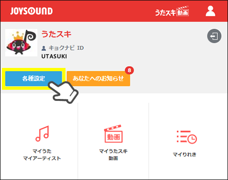 JOYSOUND X1のお部屋では、モニターやキョクナビに表示される自分の画像がプロフィール画像に。好きな画像を設定して楽しもう♪