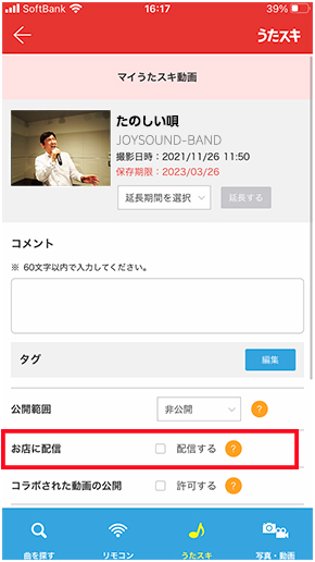 あ、そうだ、「自分でコラボしたい!」って場合も、まずはお店に配信だよ。あと「非公開で保存」した動画は、お店に配信してもキョクナビでは探せないから、コレクション登録をして、キョクナビの「マイルーム>コレクション」から引き出してコラボしてね~。