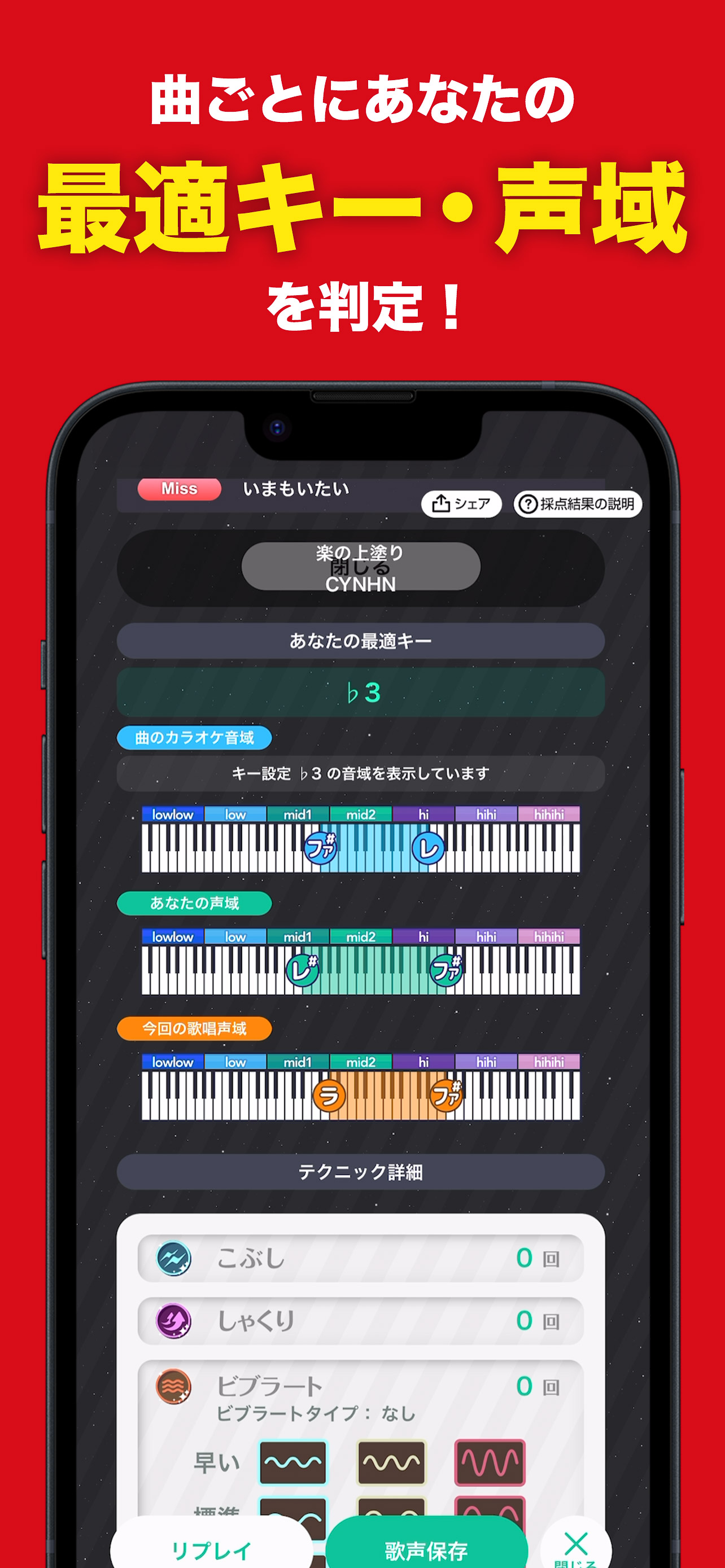 あなたの歌声をカラオケ画面と一緒に再生!自分の得意不得意がわかる!
