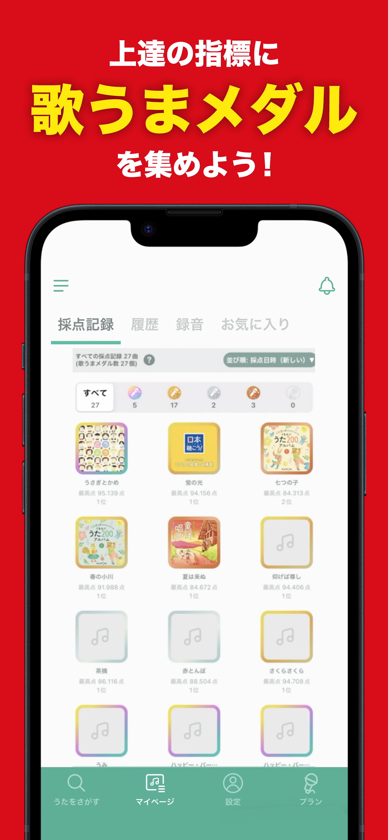 上達の指標に!得点によって色が変わる、歌うまメダルを集めよう!