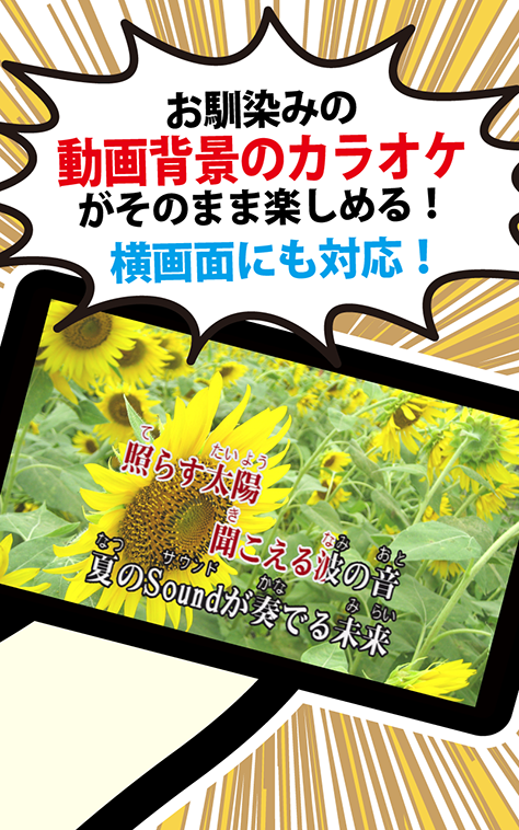 お店と同じカラオケ映像をそのまま配信。横画面対応だから、自宅でもカラオケBOXにいるみたい♪