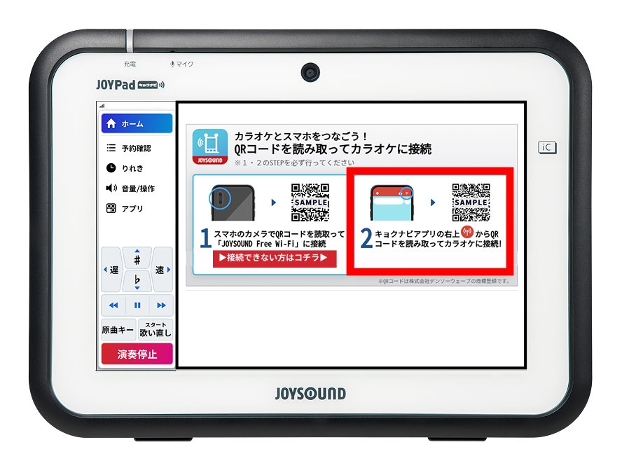 右の「2」のQRコードは、JOYSOUND X1とアプリを接続するQRコードになります。