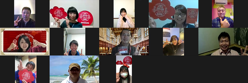 新型コロナウィルス感染拡大の影響により、2020年度は『うたスキフェス』の開催を断念。いつかリアルに会えるその日まで、それぞれの場所で画面越しでもつながっていられたら…という想いから「オンライン活動」をはじめます!